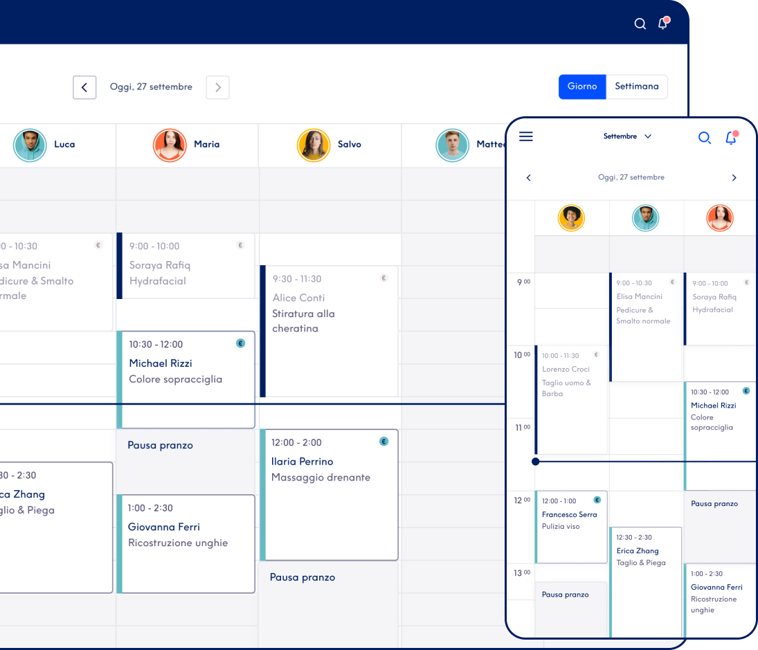 Treatwell Connect ti permette di organizzare appuntamenti, clienti e staff in modo semplice, così puoi concentrarti sulla crescita del tuo salone.